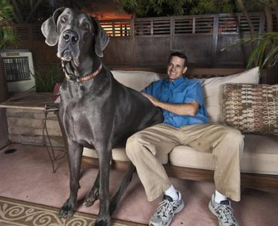 吉尼斯世界纪录保持者乔治重111公斤,身高一米英寸。它是当今世界正式注册的最大的狗,如果后腿站立达到2.2米。可它害怕吉娃娃。