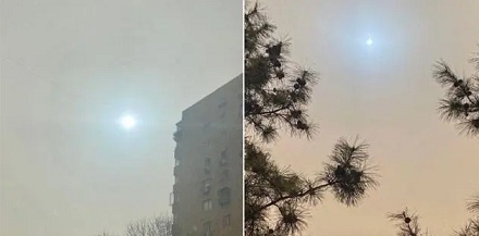但是当沙尘暴袭来,大气中充满了更大的沙尘颗粒当沙尘直径在 0.6-0.8mm 区间时,沙尘对红橙光的散射和吸收增强了,导致红光减少了,太阳周围剩下的蓝光自然就多了,所以看起来就是蓝色的。