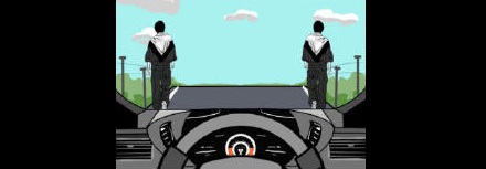 引擎盖与行人膝盖重合,说明距离行人约 2 米,这时候要礼让行人。
