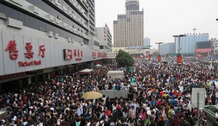 我们现在觉得大广场很空旷,但在以前的春运时期,它可是这样的——
