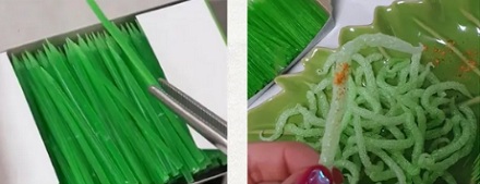 而是这种绿色的、韩国特制的牙签,油炸之后跟虾条一样——