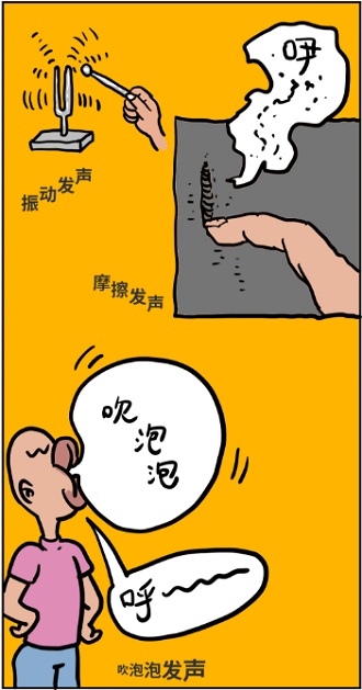振动发声、摩擦发生、吹泡泡发声……